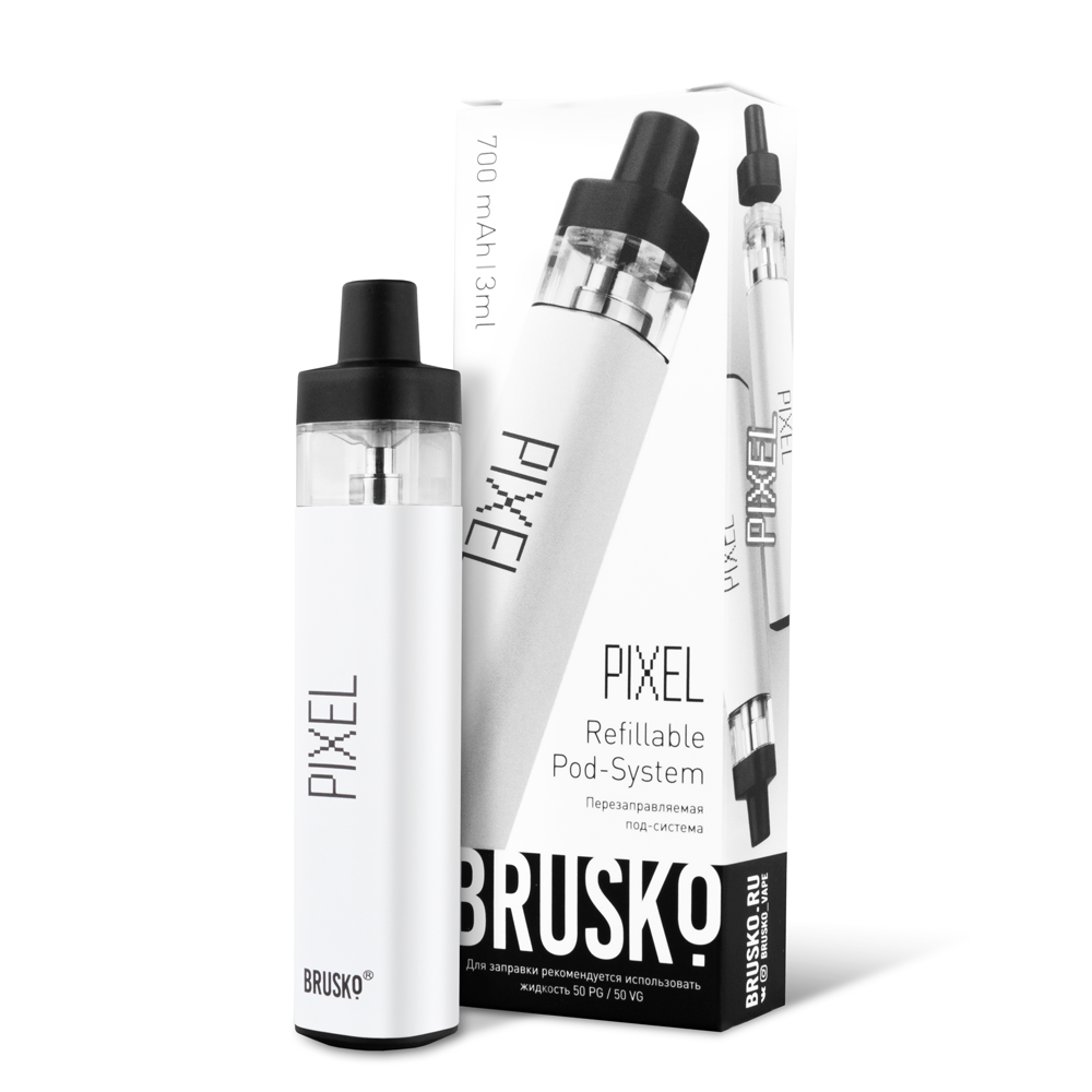 Перезаправляемая Под-Система Бруско Пиксель (Brusko Pixel) 700 mah, Белый - купить в Камешково